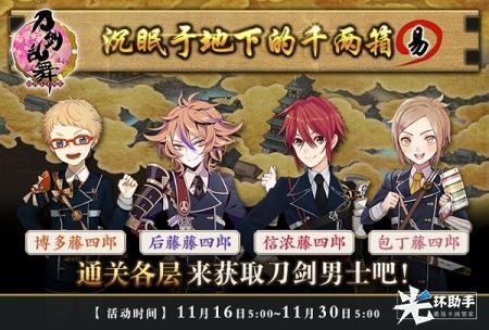 审神者率领刀剑男士来到大阪城地下,通关每一层都有概率获得【短刀·博多藤四郎】、【短刀·后藤藤四郎】、【短刀·信浓藤四郎】和【短刀·包丁藤四郎】。
