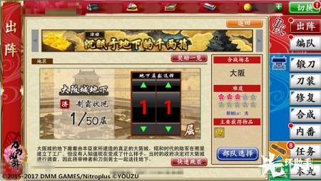 在此次活动中,审神者可以选择出阵已通关的地下层数(未通关的层数不可选择)。
