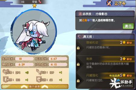 旱魃的大招是对单个敌人造成大量伤害,配合自己的第二个特性和专属法术牌,大招的输出非常恐怖,秒一个脆皮后排非常轻松。而且由于自身闪避高,配合闪避后的隐身能大幅提升自身的生存能力。可以说是个攻守兼备的角色。