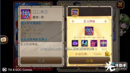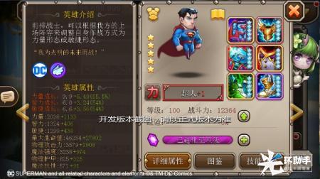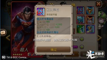 超人觉醒装备——正义降临,力量、生命值和物理攻击的增益使超人的战斗能力更加犀利,闪避属性的提升让超人在场上更加灵活自如。