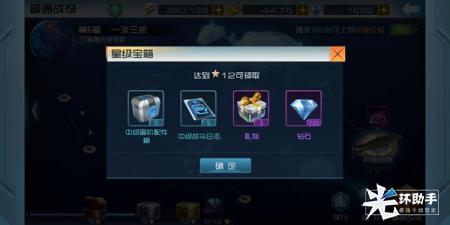 在战役关卡中通过关卡会有相应的星级,每一章星级总数达到5星、9星、12星的时候分别可以领取对应星级的宝箱,包厢中含有晋阶配件箱,开启包厢会获取到相应的配件、