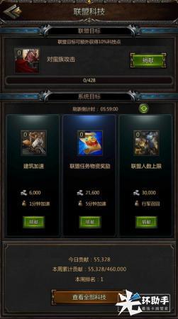 系统会随机抽取3个科技作为系统科技目标,捐献被设定为系统目标的联盟科技会给予道具奖励。