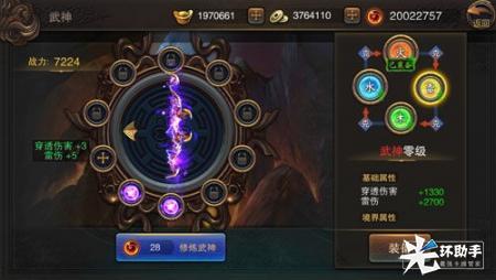 ③武神每升10级久需要进阶才能继续升级,进阶需要对应属性的神石,绝地杀场可获得神石包,打开后获得随机属性神石5个。当每个属性都升到同一阶第9级时可以激活觉醒属性。打竞技和副本时可选用克制敌方的武神属性,能够让自己获得优势。建议每个属性武神的都提升到最大,武神加的战力虽然不多,但是用的好就相当强大。
