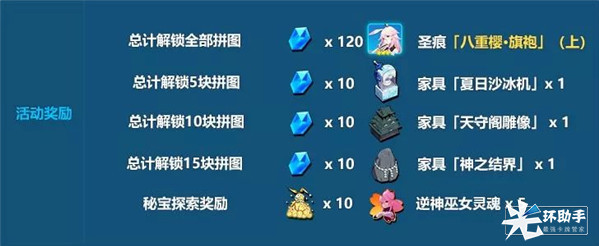 3)活动期间完成全部拼图即可获得圣痕「八重樱·旗袍」。