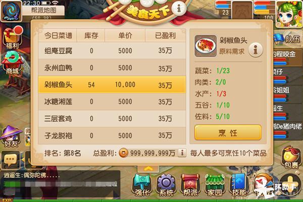 作为帮派的统筹者,帮主要提前在非活动时间设置好帮派菜谱,以便光临的食客根据菜谱点菜。而帮众则需要分工合作,帮助庖丁完成食客所点的菜肴。其中,擅长跑动沟通的帮众,可与蔬菜、屠夫、渔夫和农夫NPC对话,获得所需食材;对于烹饪中不可或缺的佐料,则需通过回答帮派聊天界面中系统提出的问题来获取,答对的成员越多,佐料就会越丰富哦!而喜好下厨烹饪的帮众,则可主动点击食客查看其所点菜肴,而后进入帮派美食菜单中进行烹饪制作,满足食客的味蕾。