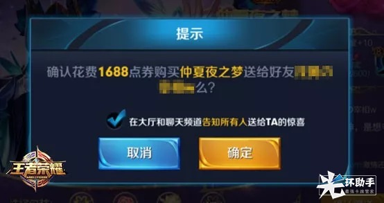 在新版本中,在赠送成功后新增了大厅喇叭和好友聊天频道的播报功能, 让全世界都能见证我们的友谊/爱意~非常适合大胆秀恩爱的召唤师呢~