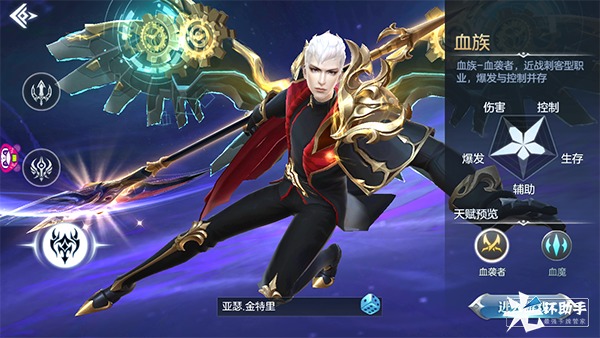 定位为爆发控制类职业(类似魔兽中的刺客),属于近战职业,行动敏捷,控制和爆发双强。分两个天赋方向——血袭者、血魔。