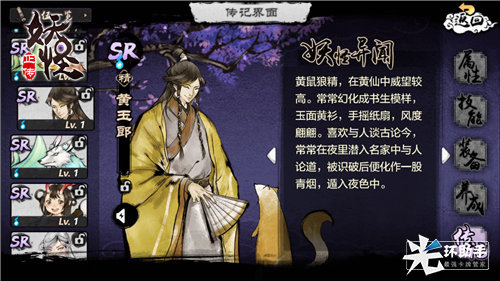 而且在妖怪的造型设计上,《妖怪正传》也别具匠心,将妖怪的性格、真身等特点融入到造型之中。以黄玉郎为例,黄玉郎,真身为黄仙,也就是黄鼠狼,在东北民间故事中出场率极高。黄鼠狼本身就是一身黄色皮毛,因而《妖怪正传》游戏中的黄玉郎也是一袭黄衫长袍。虽然黄玉郎面带微笑,手持折扇,一副较弱书生模样,但眼角带笑仍难掩黄鼠狼的狡黠之态,可谓惟妙惟肖。