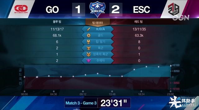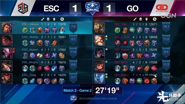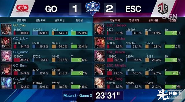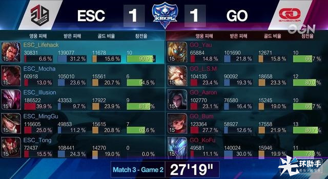 经过三局艰难对局,ESC最终战胜了劲敌GO,2比1取得本场比赛的胜利。