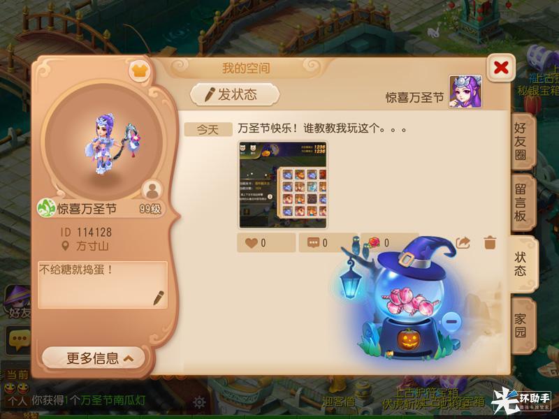 随着万圣节活动的火热进行,个人空间糖罐中的神气糖会不断增加,而这些糖果,都是三界好友为彼此准备的节日礼物。摇动他人的空间糖罐,即可获得神气糖,食用后能够让自己变成可爱的萌宠。当玩家自己的空间糖罐被摇动十次后,还可获得一个可爱的南瓜灯。想将惊喜好礼收归囊中的玩家,记得多与小伙伴们一起摇摇小糖罐哦!