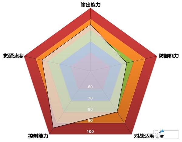 战神的觉醒速度在配备7星大海啸的条件下还算可以,一般在比赛第三第四个觉醒,而且战神的全体觉醒伤害并不算低,五人的话伤害在100万左右,可得85分。至于对战适用范围,战神几乎都是群体技能,而且没有防御或者治疗技能,单挑肯定不想了。
