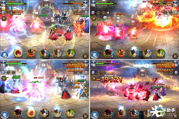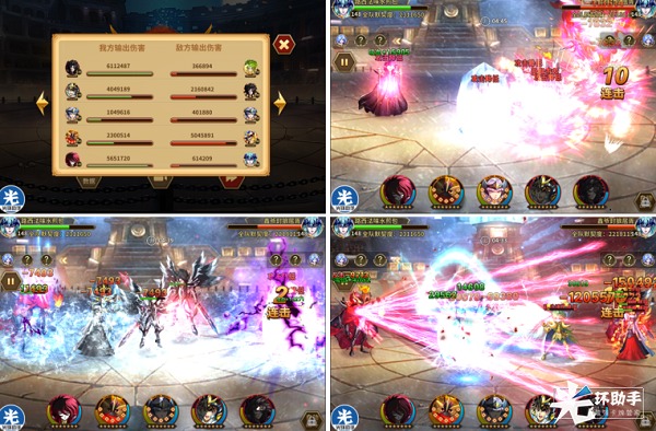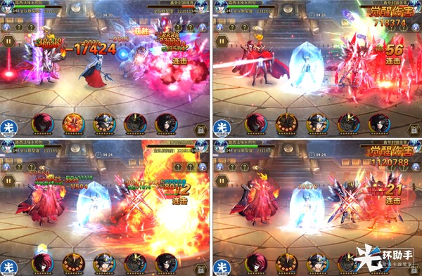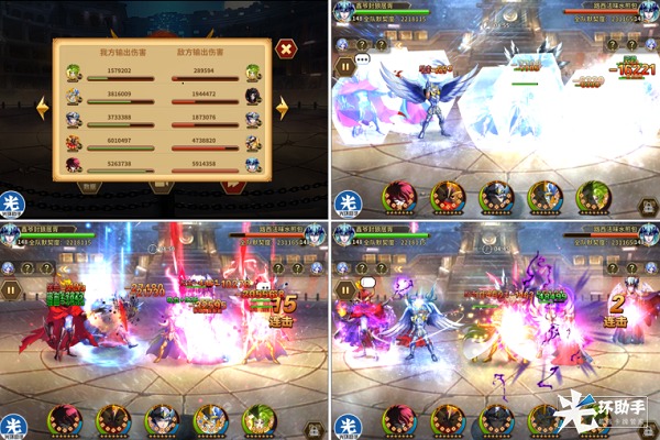 但是在路西法释放觉醒,本方不利的情况下,战神释放的必杀控制住了对方双前排,打断了前排单位对己方的压制,给了己方释放伤害技能的空间,如下图第四排右图所示。战神觉醒秒掉哈迪斯,神冰、希露达和史昂一波觉醒取得胜利(请玩家理解截图的困难和数量,后续并未截图)。