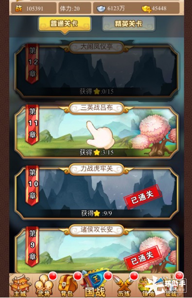 征战:简单说就是副本,或推塔,前期征战关卡每个章节有三个关卡,从十一章开始有五个关卡,后面依次增加,推搭可以获得经验、银两及一些道具奖励,积累通关星星还可以开启宝箱。当然最主要的是可以获得大量经验来升级,小编建议,使用炮手尽量推塔,当推不动了,提升武将,继续推,一直推到实在真的推不动了,开始扫荡,前期可以将部分包子用来扫荡,提升等级及战力了继续推塔,推不动了,在扫荡,以此类推,尽量争取推高级的塔,越高级,经验奖励越丰厚,升级也越快。