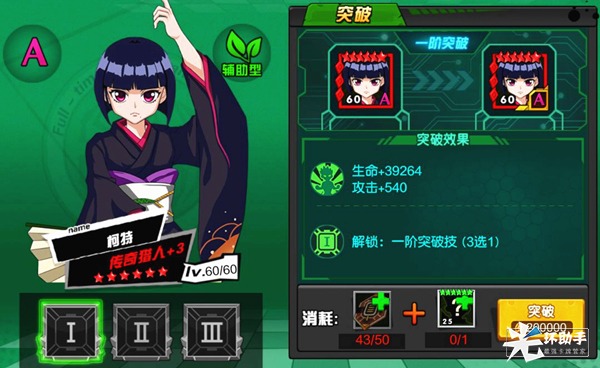 一突:50个突破芯片+任意一个25级1觉6星猎人