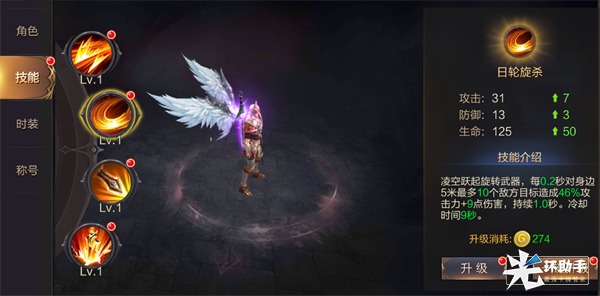 日轮旋杀:凌空跃起旋转武器,对周边目标进行多次伤害。