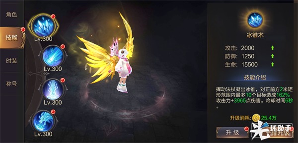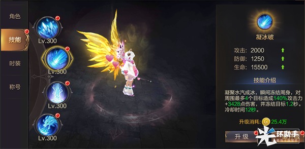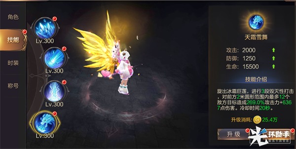 天霜雪舞:旋出巨大的冰柱,对前方目标进行多次攻击。