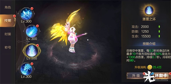 落雷之环:召唤雷电对前面目标进行多次攻击