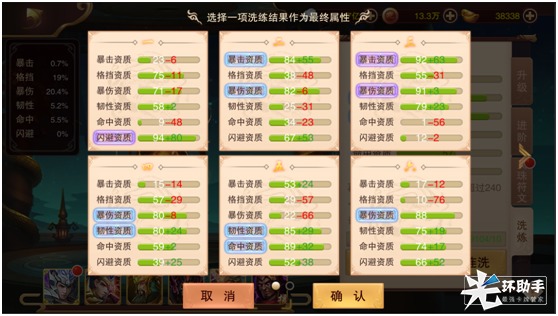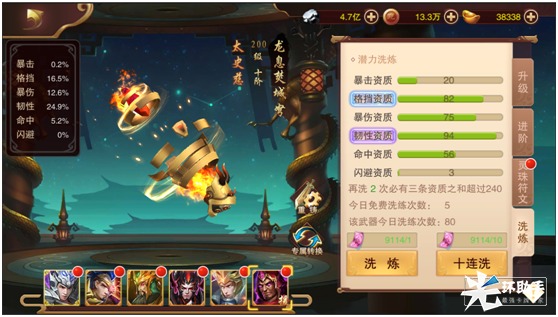 专属洗炼中,总的资质是固定的,玩家需要根据自己的需要,选择分配到最合适的属性上去。洗炼不仅每日有免费次数,还可以从其他系统的商店中获得大量免费的洗练符,是一个相当亲民又有趣的系统。