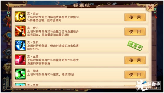 玩家需要根据自己的阵容选择援军武将,比如选择许褚进行收割,比如选择华佗进行治疗,又或者是周瑜进行控制,然后再根据这个援军武将的特点,选择援军技能,改变战场的走向。