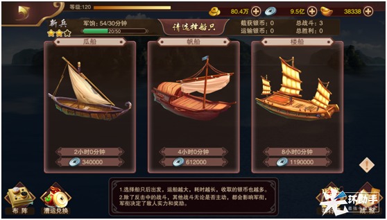 漕运是一个出船,然后抢粮与被抢的玩法,这个玩法本身其实是有策略的。从船只的选择上来说,小船虽然收益少,但是时间短,每小时的收益还大于大船,所以如果有精力的话,白天应该押运小船,晚上睡前再押运大船。
