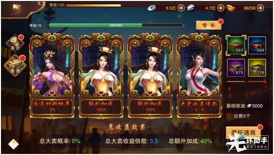 和鉴定类似,通商也有很多加成效果,但是通商不能刷新,只能通过每次通商后的自动刷新来获得不同的加成。这时候,玩家就需要收集足够的低级材料充当刷新道具,这样同样的代价,可以获得更多的资源。