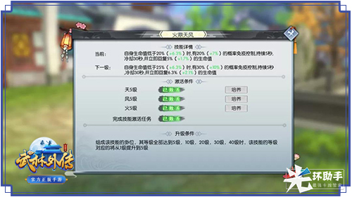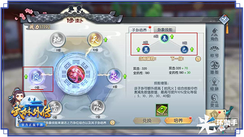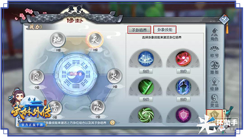 卦位技能效果同时将伴随等级提升而增强,因此少侠们在提升时需要均衡培养,子卦位的每一次成长,都将为少侠的属性带来提升。