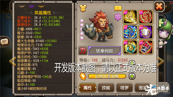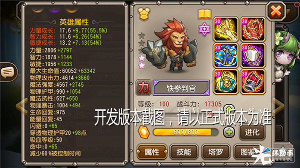 作为前排坦克型英雄,铁拳判官有着很高的力量成长,加上不低的魔抗、护甲,造就了他强健的体魄。闪避、抵抗硬直等属性,能让他在战斗中保持较高的生命线,承担更多的输出,发挥出坦克最大的作用。