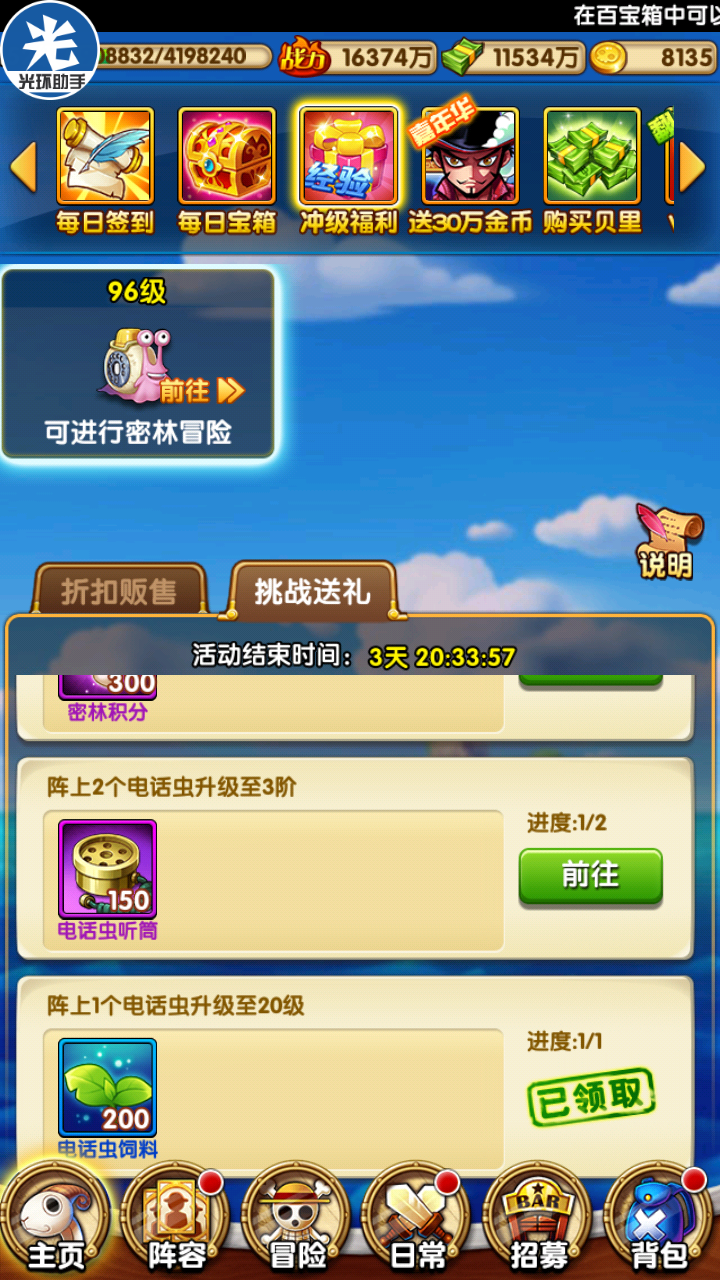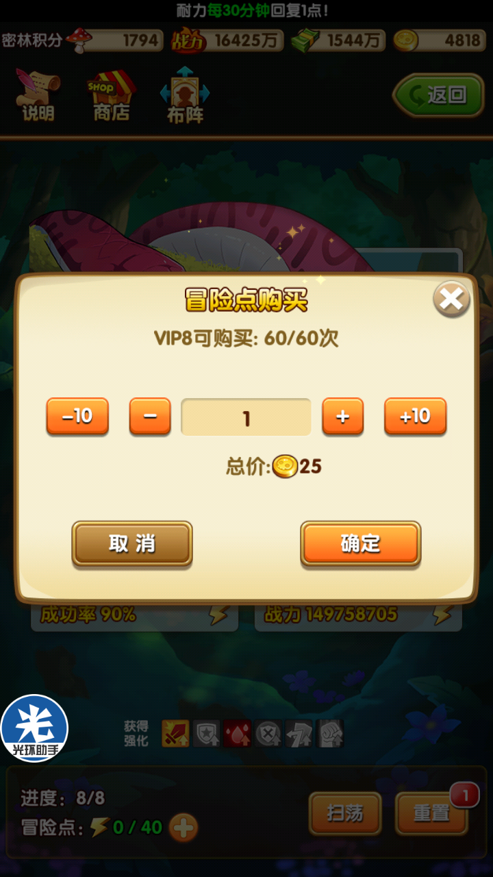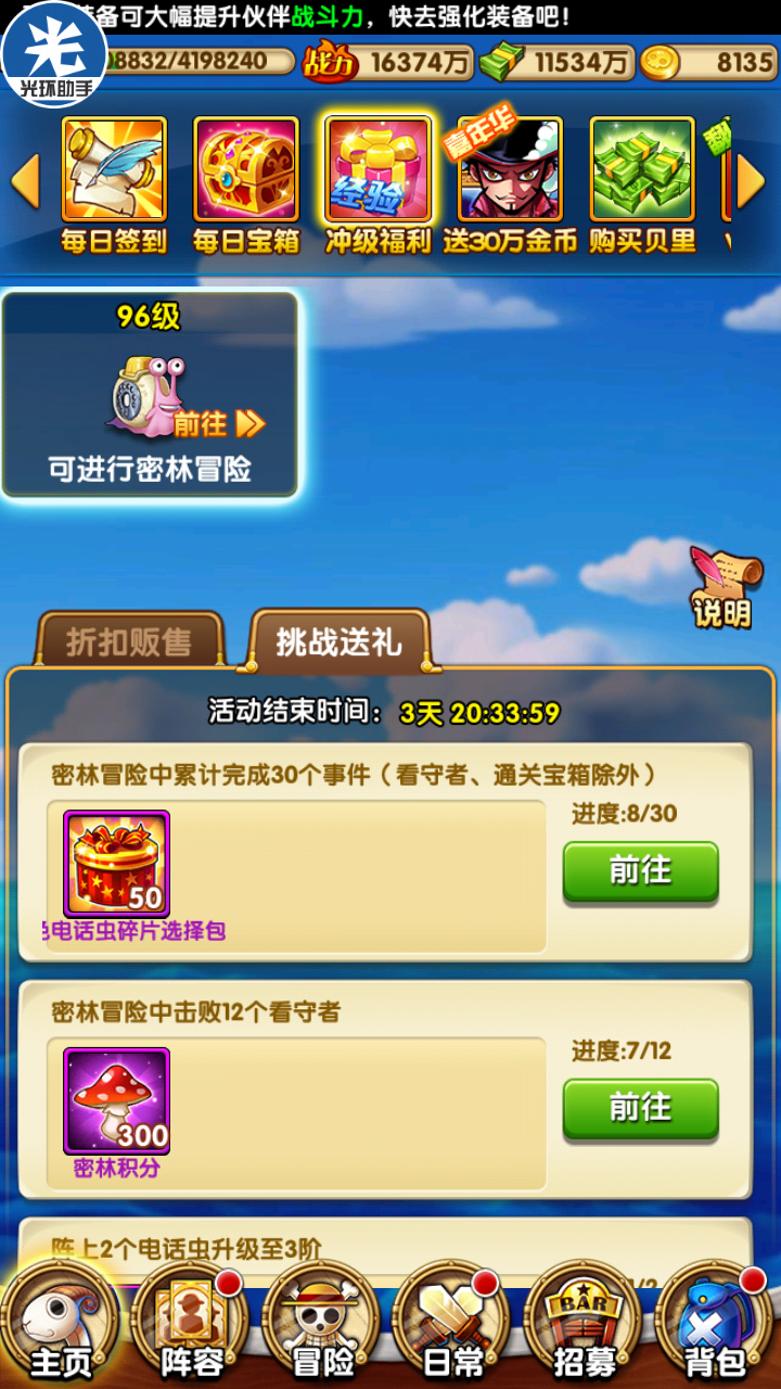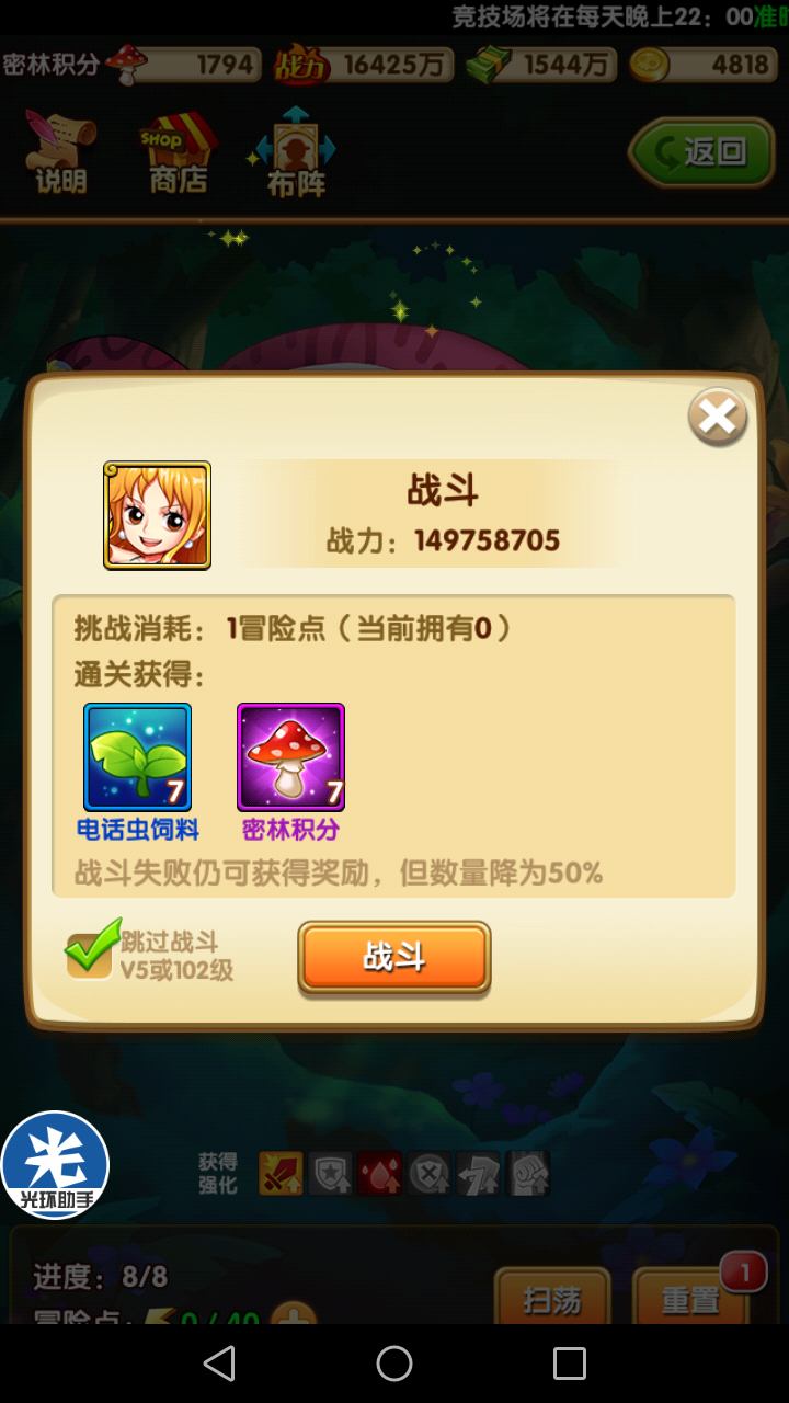 关于密林冒险,这个玩法默认玩家先手,通过pvp过关拿资源。优先打最上面的关卡,打到通关为止,第八关通关以后,就可以无脑刷下面的两个随机关卡了。优先打宝箱,其次是精英,最后才是普通的。