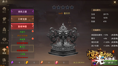 已激活的魂器还可以继续消耗道具来进行升星,每个魂器最多可提升到5星,每提升一个星级可获得大量的基础属性。