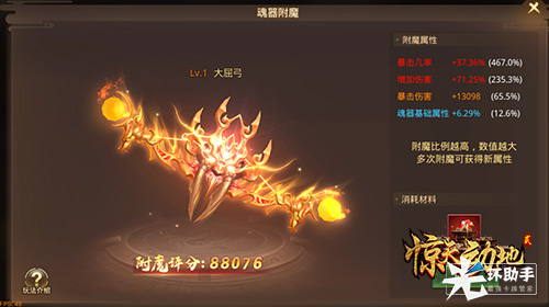 每个魂器都拥有4条附魔属性,附魔属性包含多种多样的特殊属性,激活后可获得大量战斗力提升。消耗附魔石可以激活附魔属性以及提升附魔属性的百分比。