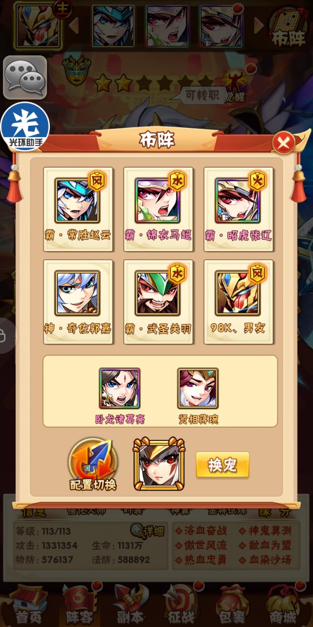 想换就换啊,不过彩金2应该快了,到时候光环位肯定是彩2个张辽的