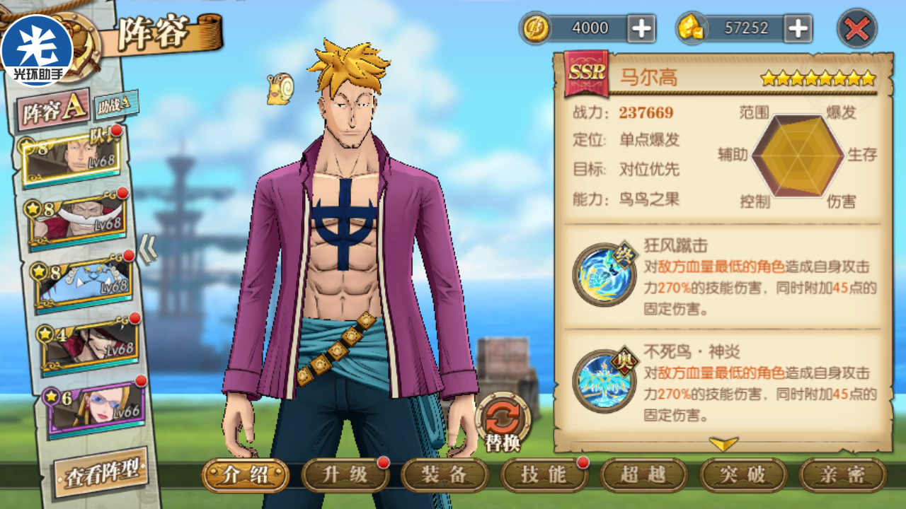 你有甚平,白胡子,马尔高,佳妮法,基本上后期剧情都可以横着打过去。建议上个索隆,还可以给全队减伤。 培养限定的正确姿势 第一步:分清楚该限定是六星即可还是非八星不可的角色,例如雷利,就必须八星,麦哲伦则六星就很好用了 第二步:限定角色升星最好不要一颗星一颗星的升,屯够350个后直接八星更好,免得抽中新ssr,又又又想养,没有金魂,导致滚服,平民玩家选择自己最喜欢的就好。 第三步:先升级再升星,观望版本,看这个到底适不适合自己,对自己阵容提升大不大。 新限定不能秒八,使劲抽是没有啥用的,养又养不起,抽到也是库管,收集党请无视,
