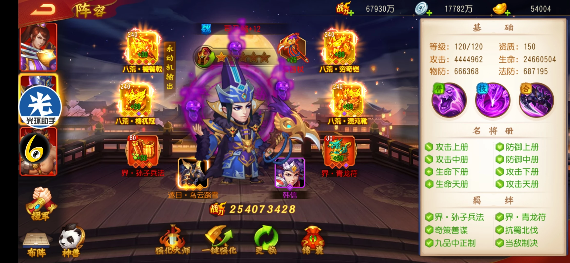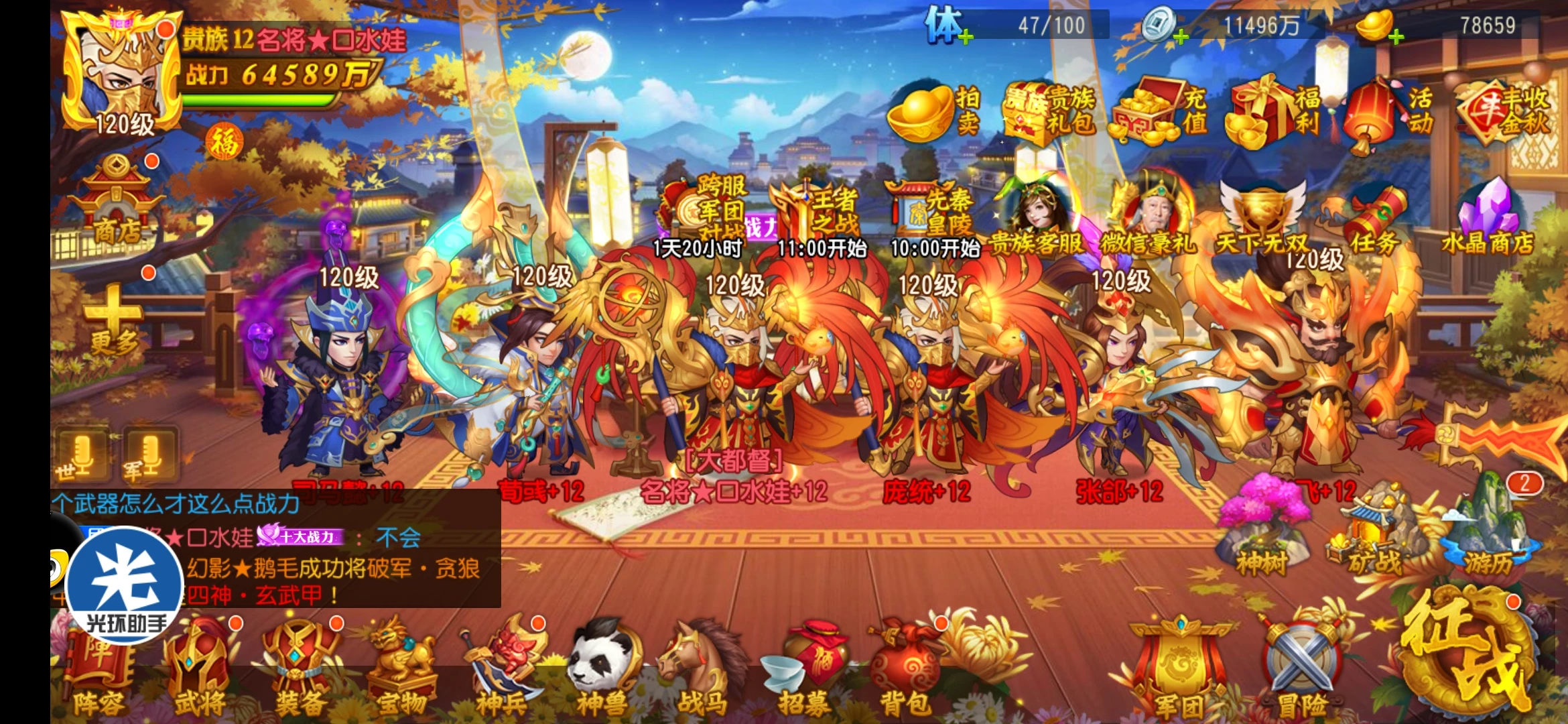 不知道你司马懿的具体情况,如装备,锦囊,宝物,神兵,觉醒等