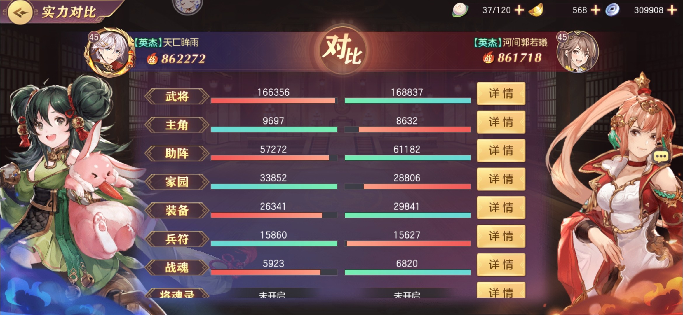 数值表现和实际表现是有差异的,不能光看数值,挑一个来讲,羁绊,对面的羁绊覆盖面很广,收益高,从羁绊上已经领先了,当然我这只是举了其中一个例子,大多数阵容都存在阵容克制,往后面玩就知道了。 战力数值只能当做参考,不能用战力来衡量某个玩家的强度。要看实际情况,比如说资源分配方面的不同,可能产生的效果也不同,均养打不过极限,在大多数情况都是这样。