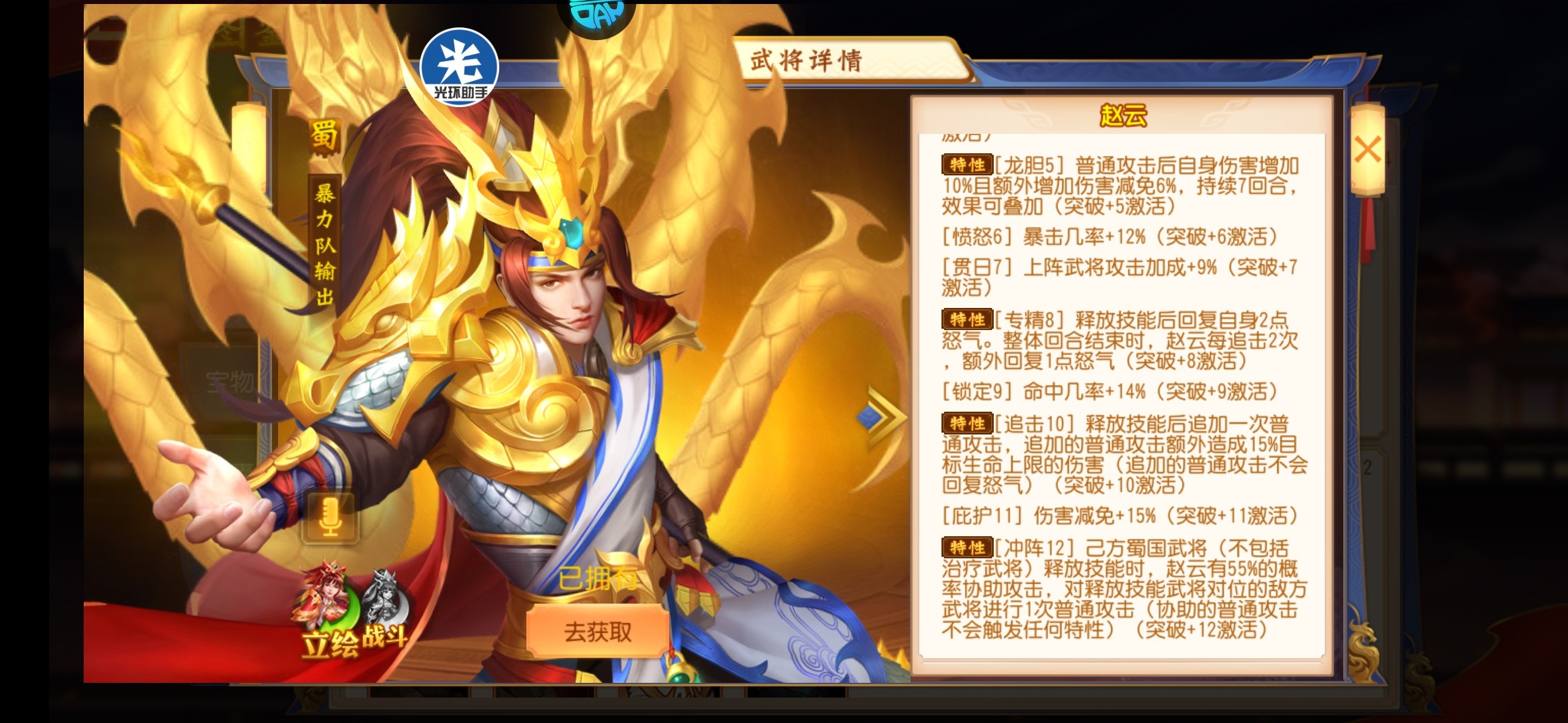🔥赵云突12技能说明非常清楚: 不触发任何效果。当然包括追击。本身机制就设计这样了。没什么好纠结的。🔥关于加强赵云的问题。我个人觉得还是不要加强了。赵云还是不错的。赵云注重的是整个阵容的配合。需要队友拖回合去让赵云叠加伤害。赵云第4回合才就是发力。如果初始赵云和火神孙策攻击差不多。那么让吴国怎么玩?火神之怒战法谁会去开?你还是把培养重点放在刘备上面。保持不死。后面就是赵云的天下。 🔥说实在话。蜀国这个版本还是非常不错的。打吴国和魏国还是有一定的优势的。