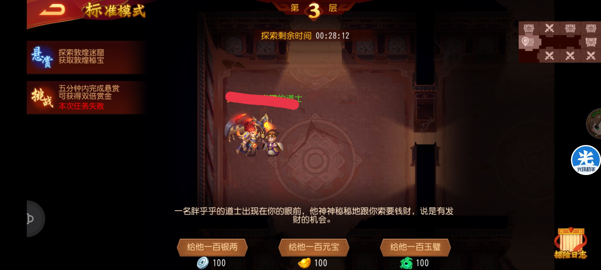 只给一次100玉壁,以后碰到都给100元宝