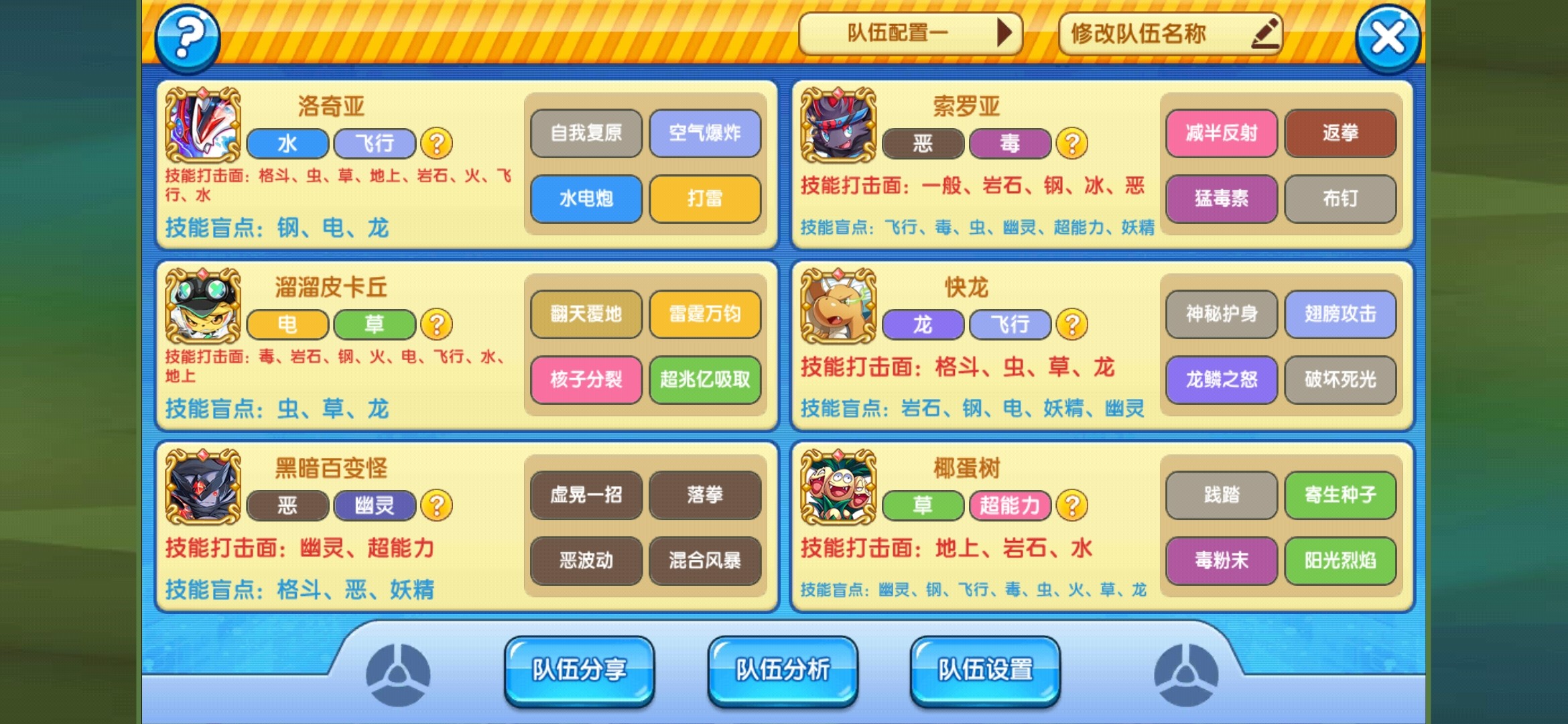 快龙的性格最好是悠闲或者是淘气,然后技能方面的话就是歇息,神鸟特攻吼叫,然后再加上一个电磁波 你如果想上蜗牛的话,最好就是把洛奇亚拿下去,要不然的话,你的整个队伍输出太多,如果不想要拿下去,那也可以把,黑暗百变怪拿下去的,还有就是最后一个礼包,暂时留着,除非你要拿专属给洛奇亚