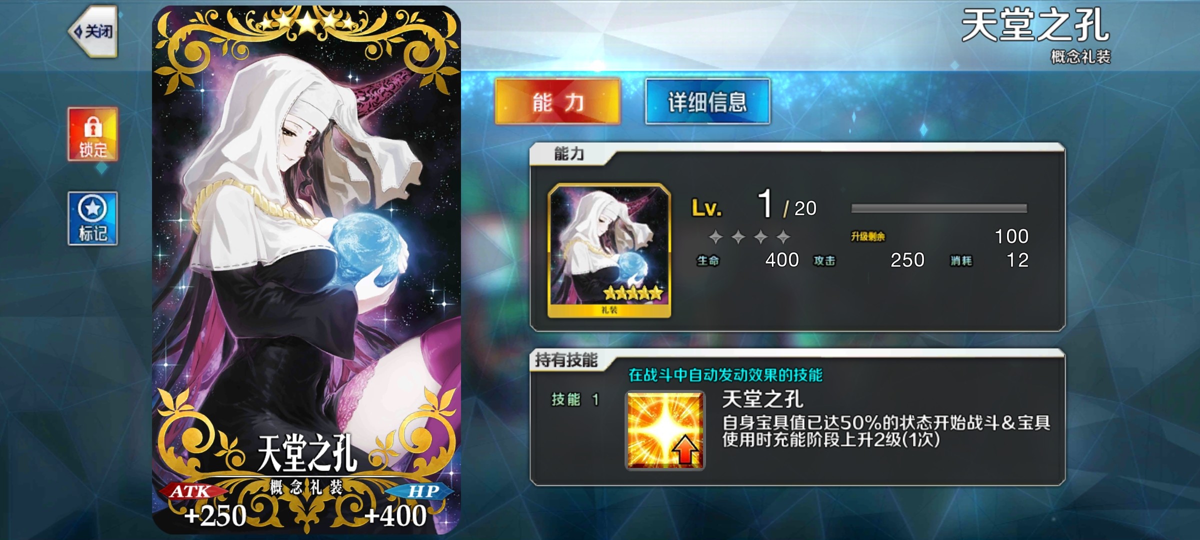 最简单来说,带这个礼装的英灵,放第一次宝具就是以300np时候释放宝具一样的效果,这个可以和宝具连携一起叠加宝具充能等级效果