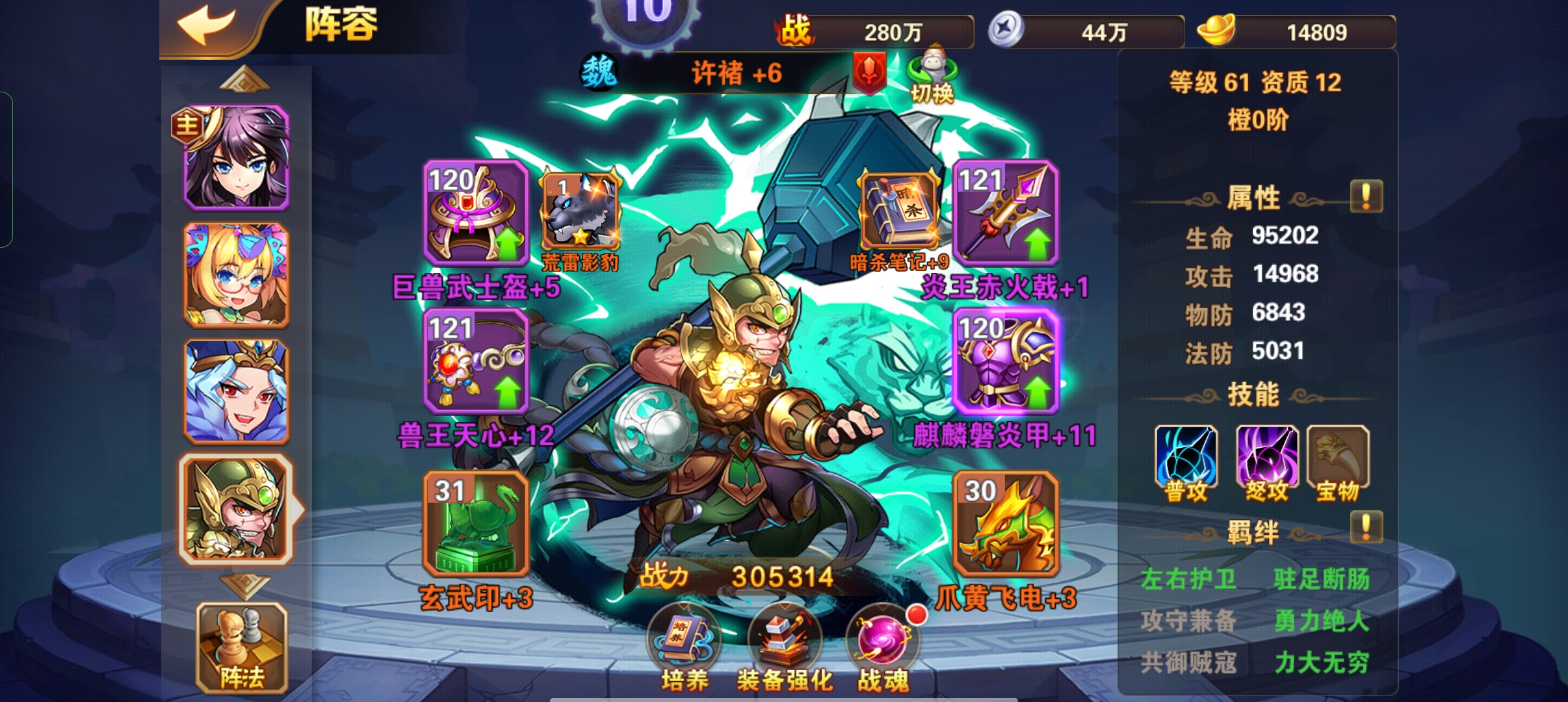 建议下许褚,上司马,要是主荀彧就副菜菜尽量别均养太弱