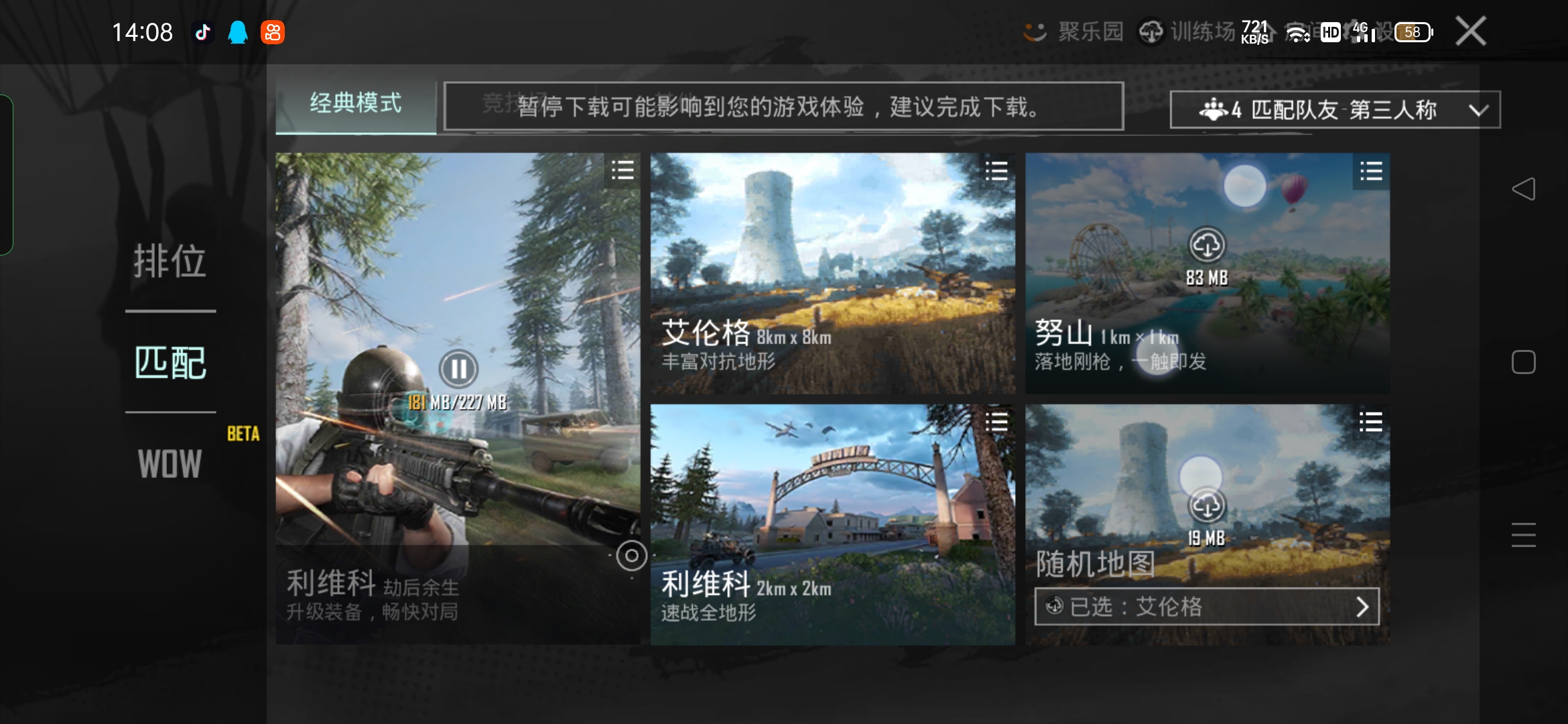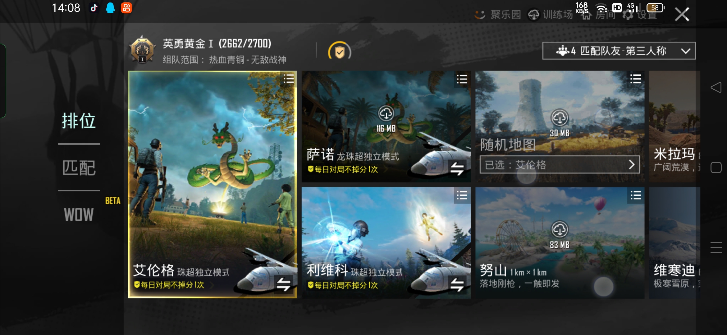 为什么我没有大逃杀龙珠摸式只有排位模式?