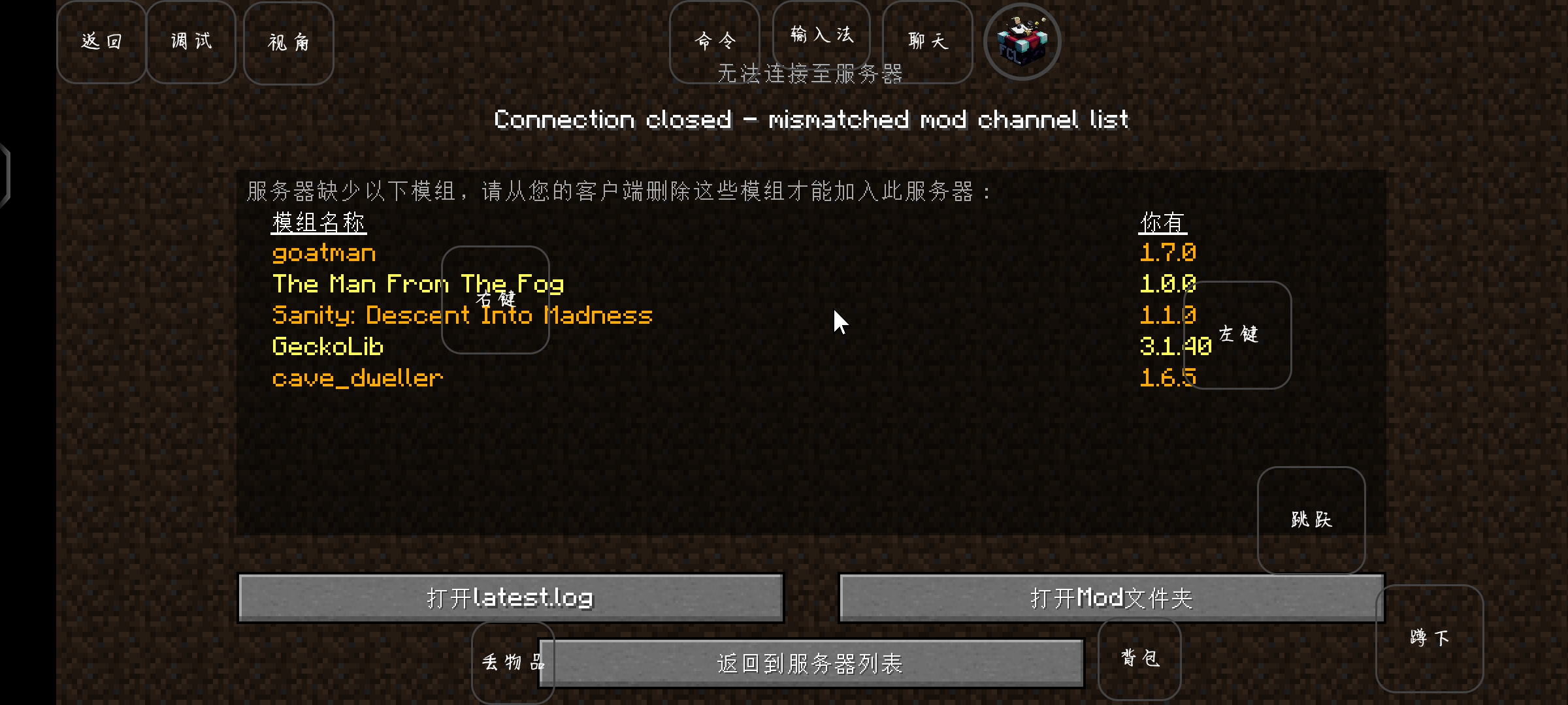 因为服务器没有雾中人这个模组,所以不兼容需要。重新创建一个不一样服务器