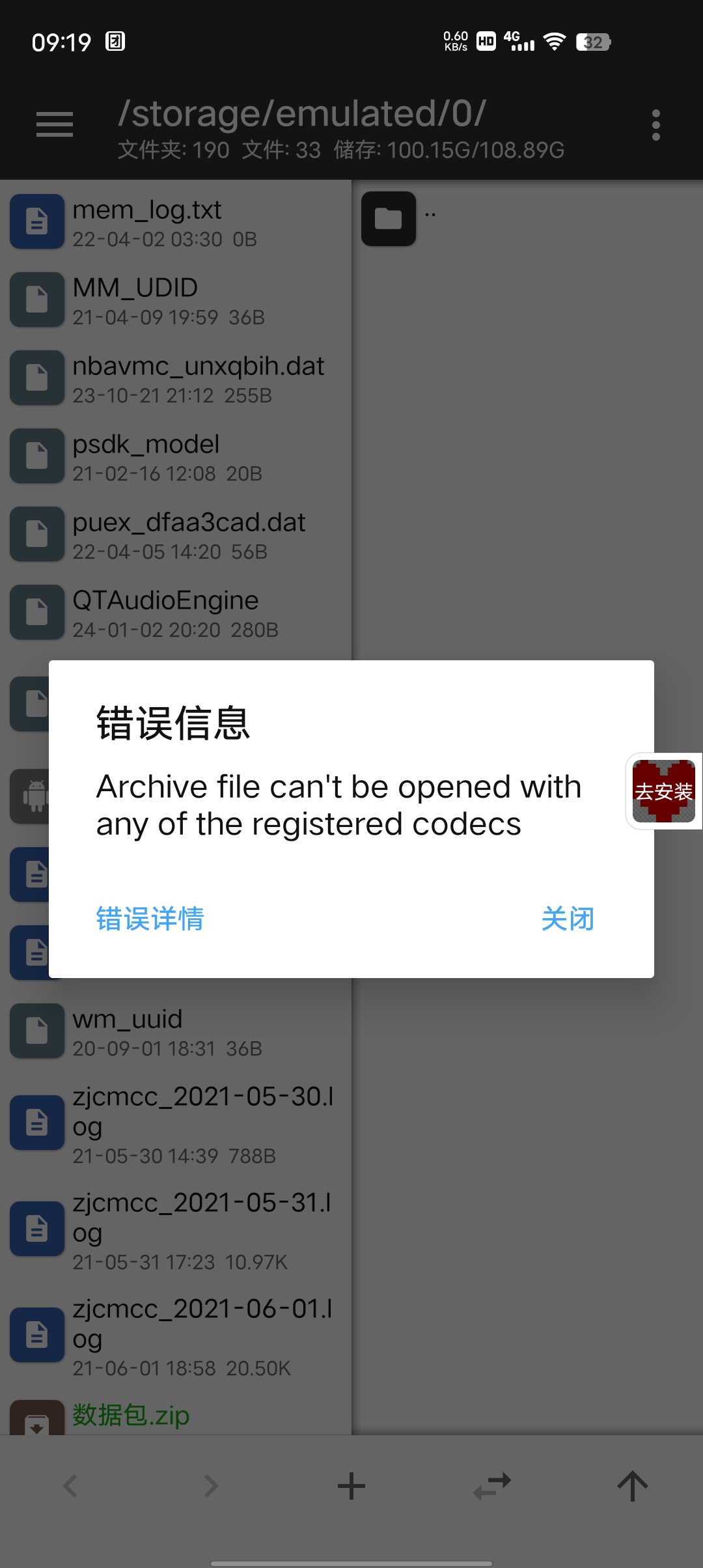 压缩包不完整,删了重下,还是不行那就是你设备问题了