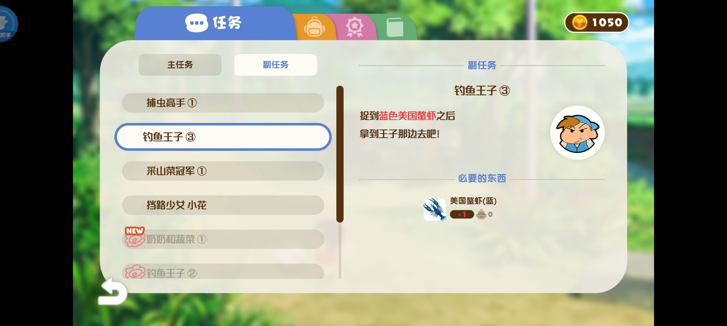 先去做邻居奶奶的任务,做好后奶奶会给你钓虾蟹的道具。