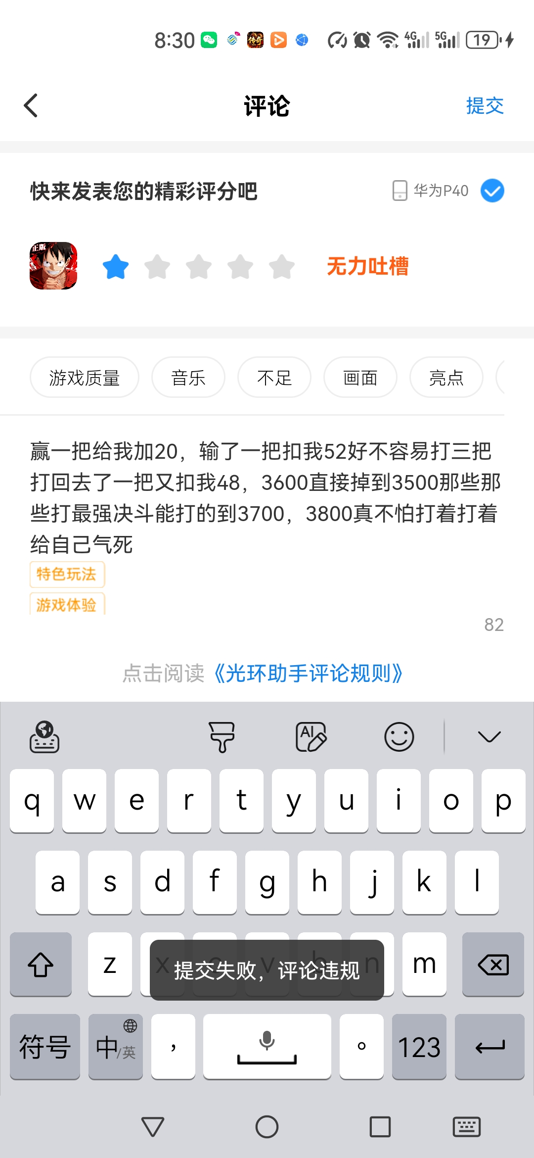 快给我气死了,想吐槽一下我遇到的事,结果这评论怎么调都发不出去。我试过只发前面那一段评分的事也说我违规