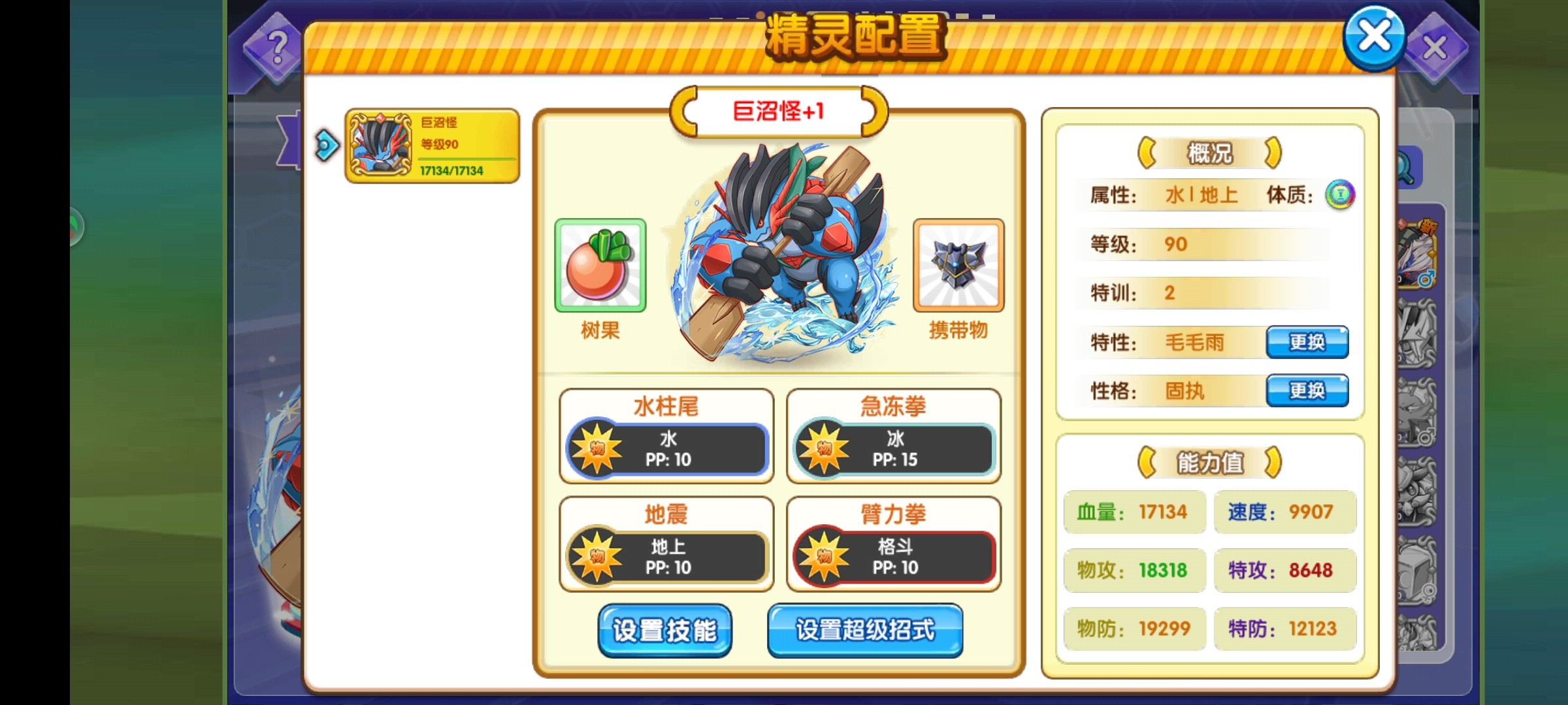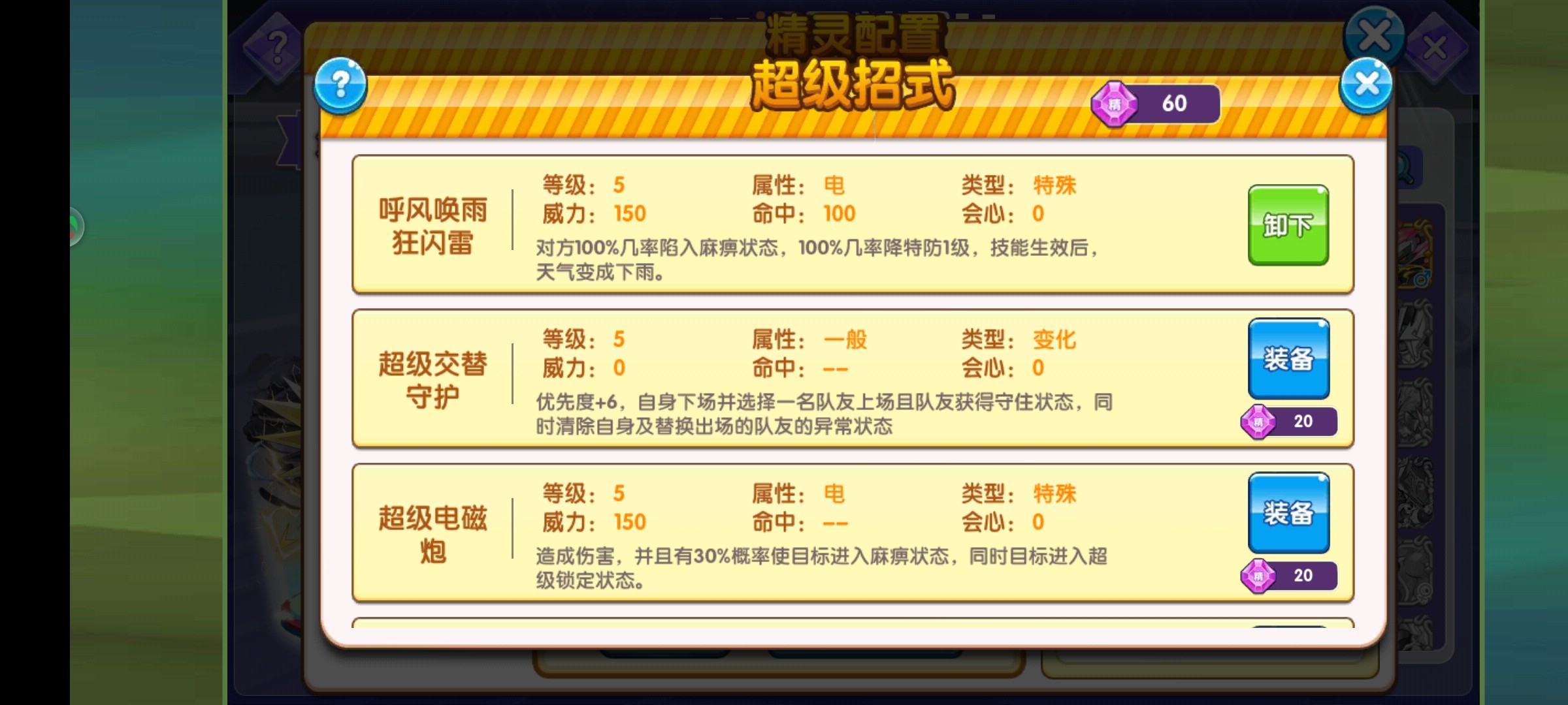 初始点数只有300,所以要有选择性的配置,其中开启特性85积分,更换性格85积分,更换道具25积分,更换技能60积分,更换大招60积分,更换树果60积分,装配极巨化30积分【大招和极巨化只能选择一个,而且大招装配就是全满,不过大招只能极巨副本使用】