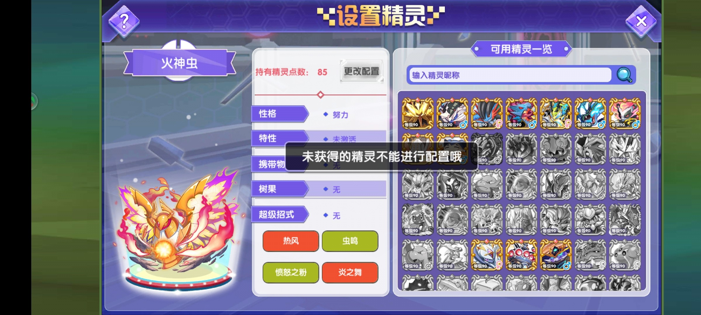 接下来就是配置精灵了,精灵只能配置你拥有的,没有的无法配置。