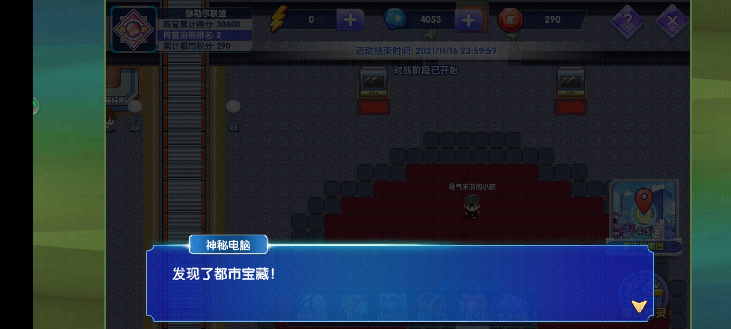 前五场打完后获得了五张藏宝图,第一个是左上角电脑的这里。点击就会触发。