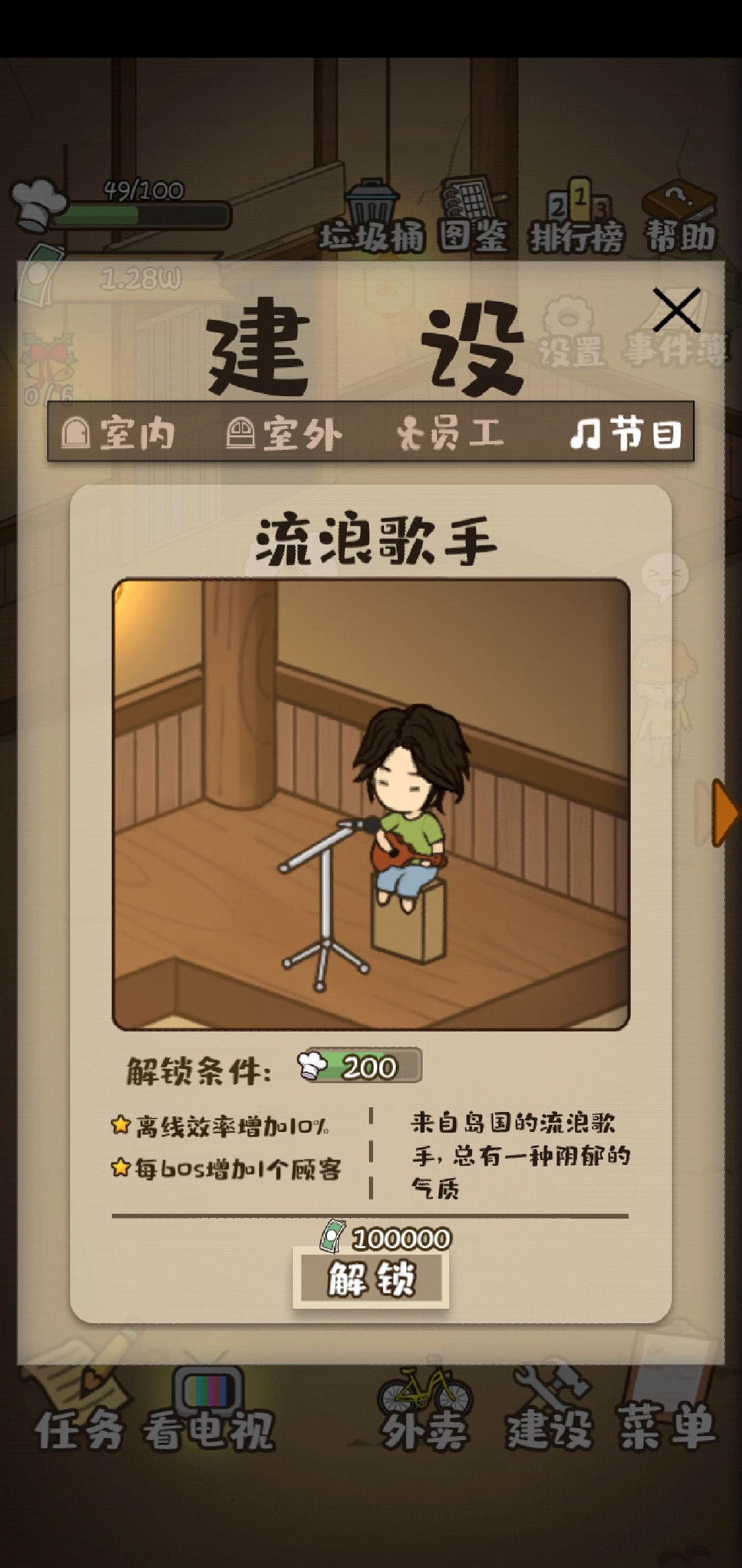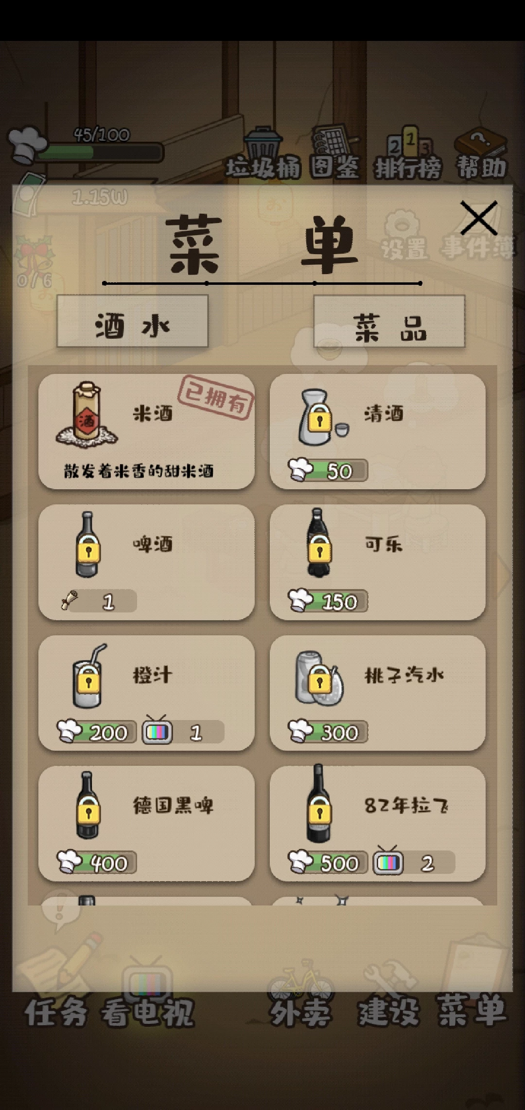 除了游戏的操作感也是比价强的,要说经营类的游戏似乎一种都没有太多的操作空间,无非就是买东西放东西而已。而在游戏之中,我们没进来一个客人,从点餐当上餐都会有我们的操作。虽然说只是点一下便可以,但这种操作也让我们能够参与到其中,真真切切感觉到这就是自己的一个酒馆,极具参与感!