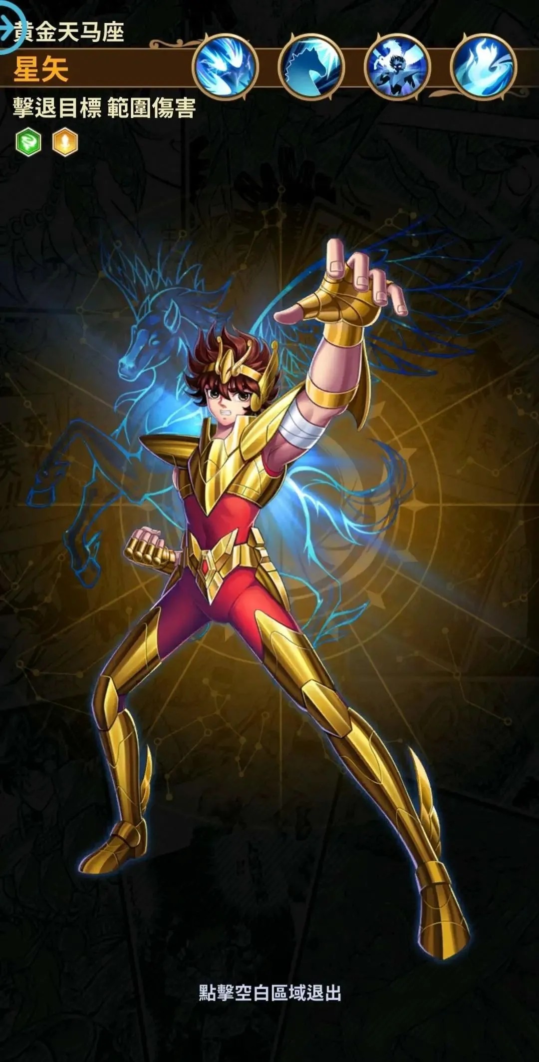 黄金天马星矢是一名初始5星的星域斗士。等级与星级需要依靠链接。其余养成系统等同于普通初始五星斗士,例如圣衣(40级上限),星座系统还是还是需要玩家自己培养的。