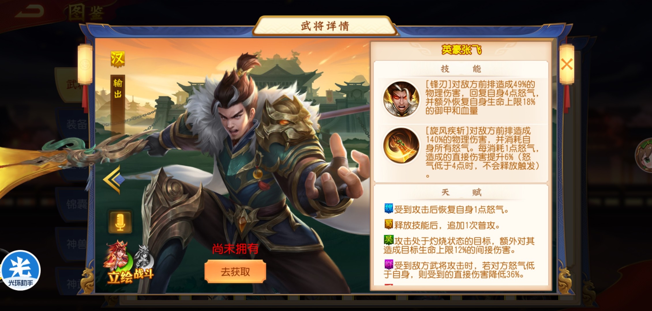 更新后,张飞的属性已经可以通过游戏中武将图鉴查看。